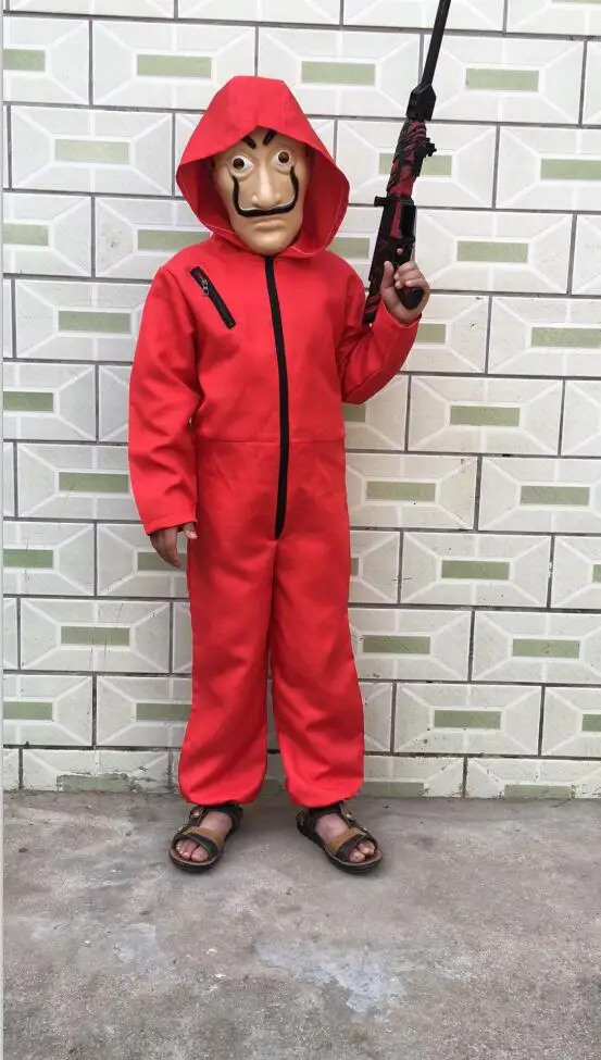 Disfraces De Halloween Para Hombre La Casa De Papel Usa Salvador Dali Dinero Golpe Rojo Mono Mascara Disfraz Cosplay Disfraces De Peliculas Y Tv Aliexpress , Incluye un traje con capucha y una dali máscara ametralladora hombre mujer adulto niño,adultm155~170cm.