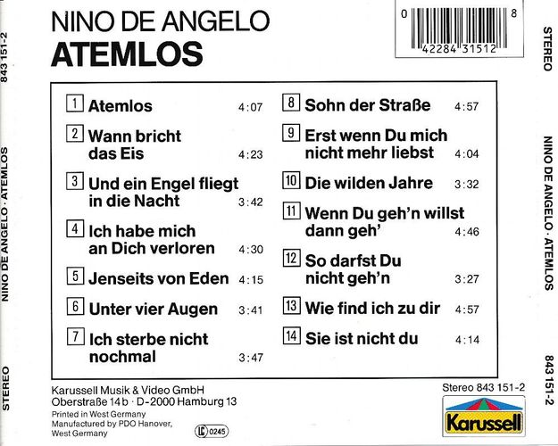 Cd Sampler Nino De Angelo Atemlos Kaufen Bei Hood De . Hier Könnt Ihr Alle Seine Songs Hören, Die Er In Seiner Karriere.